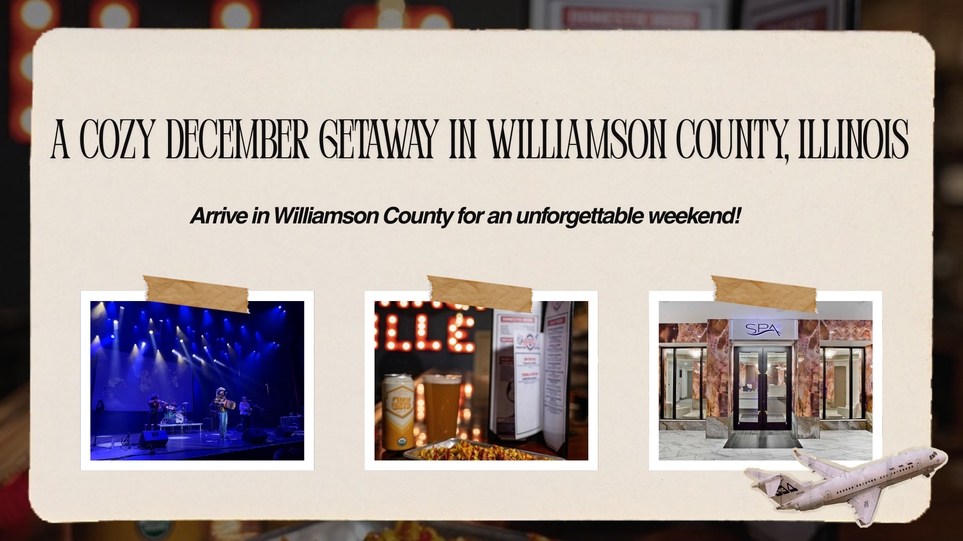 Welcome to a cozy winter escape in Southern Illinois! Whether you’re planning a romantic weekend away, a festive family trip, or just some quiet time by the fire, Williamson County has no shortage of cozy, unforgettable moments waiting to be discovered. Day 1: Arrive, Eat Well & Get