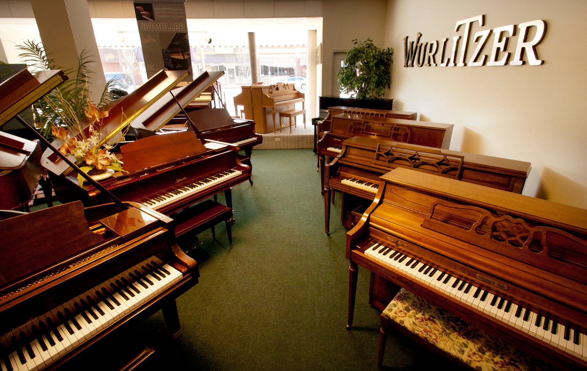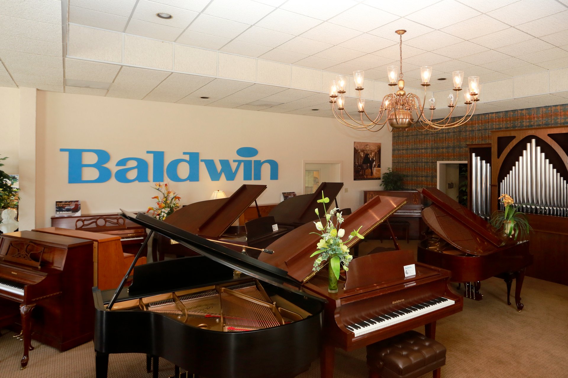 Authorized dealer for Baldwin, Mason and Hamlin, Seiler, Wm. Knabe, Pramberger and Ritmuller upright and grand pianos, Roland digital pianos and organs, and Content digital church organs.
