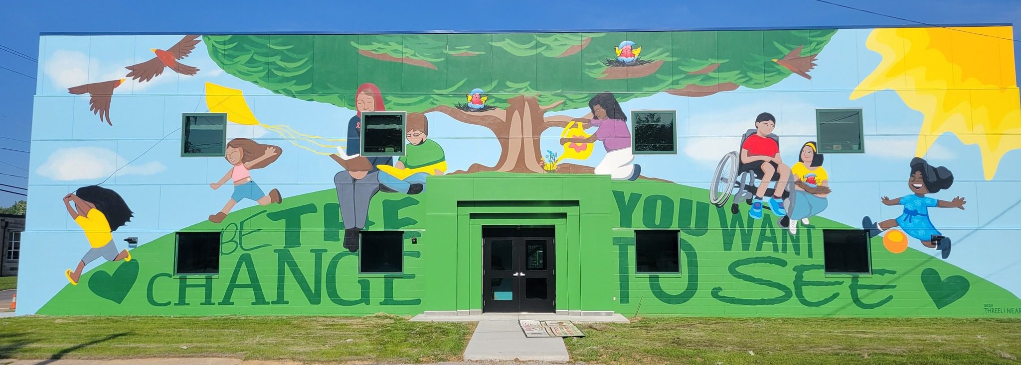 Be the Change You Want to See in the World! This vibrant mural entitled “Be the Change” was painted by Maddy Dieters @ThreeLineArt.