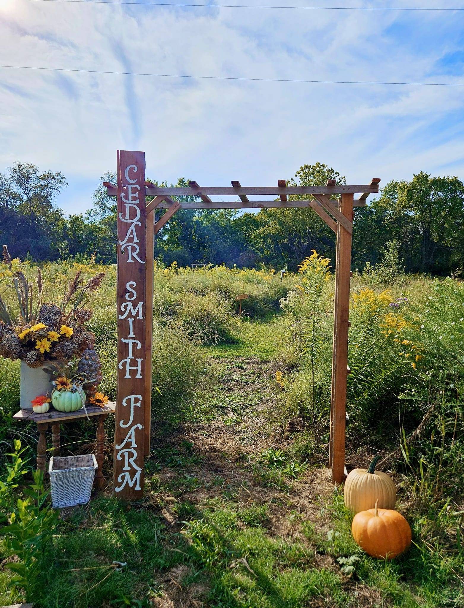 Bring out your inner flower child during one of the farm's special photo sessions with props and a beautiful backdrop of purple mist flowers, iron weed, asters, goldenrod, and more.
