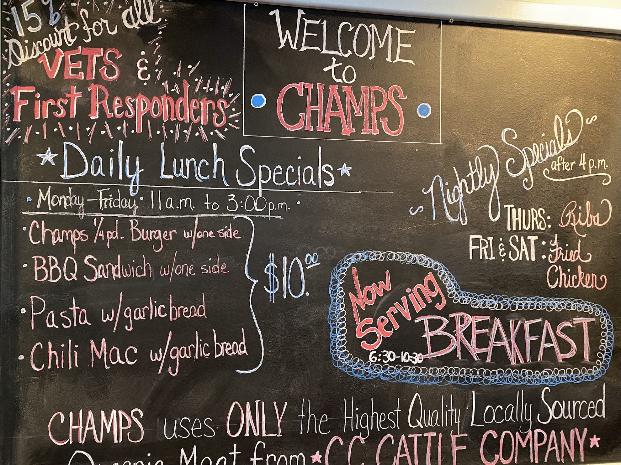 The team at Champs takes pride in preparing each meal from scratch- nothing is frozen or processed but locally sourced so guests can enjoy the freshest of dishes.