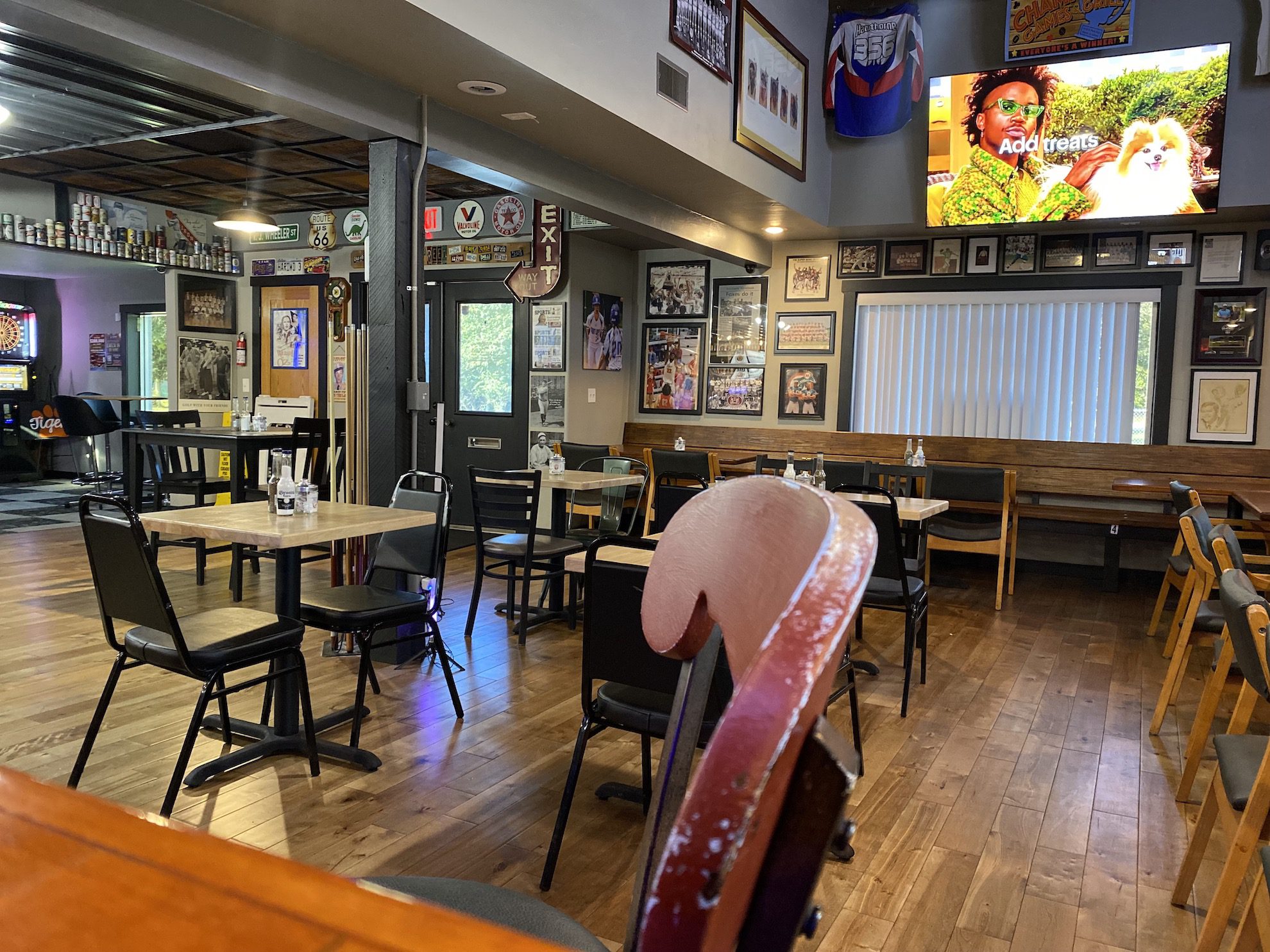 Champs features a large display of local sports memorabilia that showcases the rich history of the city’s athletic achievements.