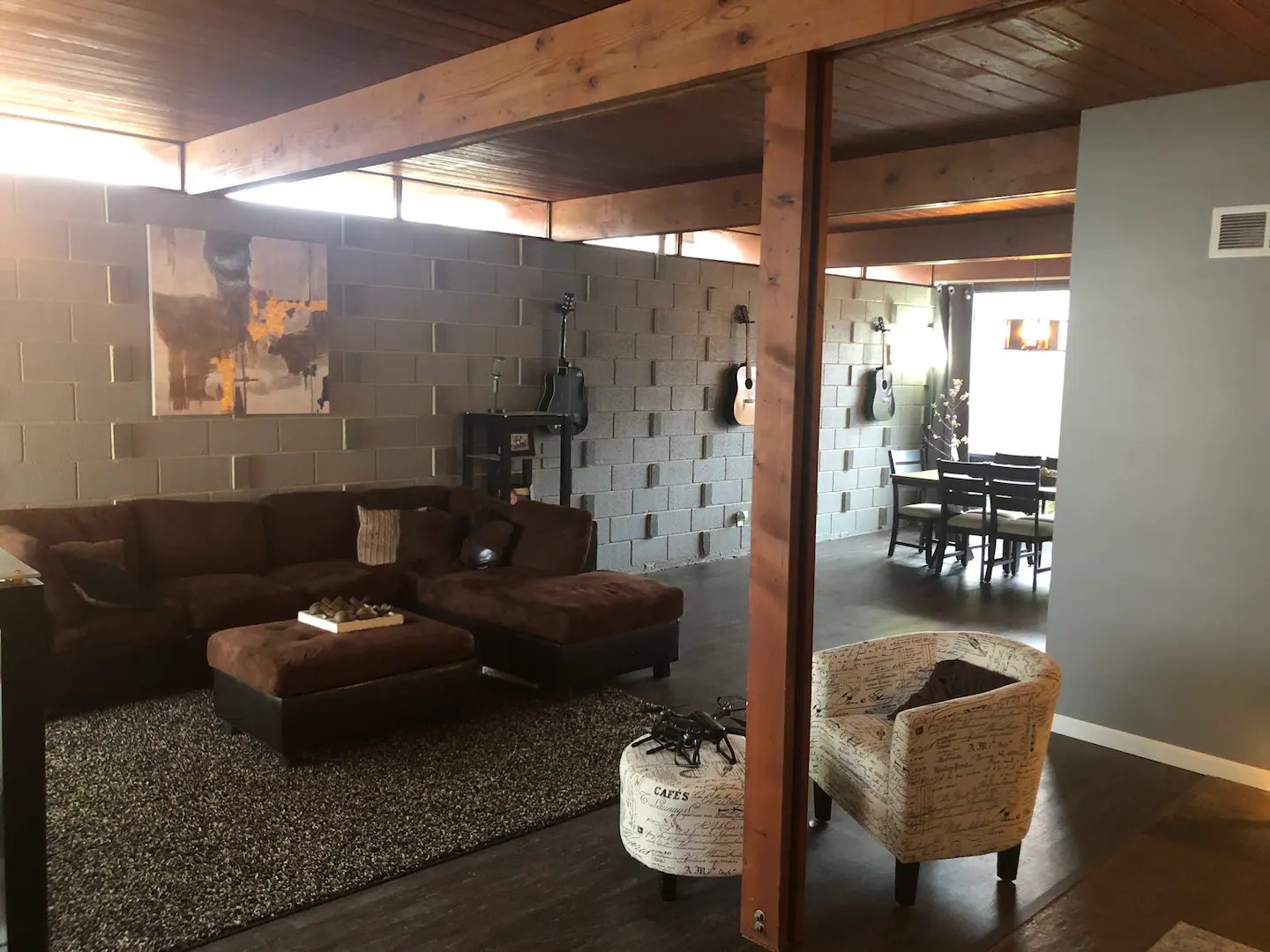 Newly remodeled, spacious home with an office, large living area, and beautiful layout. Rays of sunlight pierce through large windows and sliding glass door which opens up to a secluded, rustic, and natural garden.