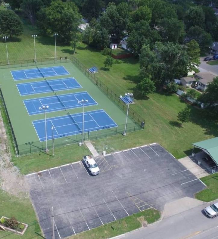 This former tennis complex has been re-striped into two pickleball courts which do not have a tennis net. Bring your own net, or removable nets are available upon request by calling the Marion Park District office (618) 993-3940.