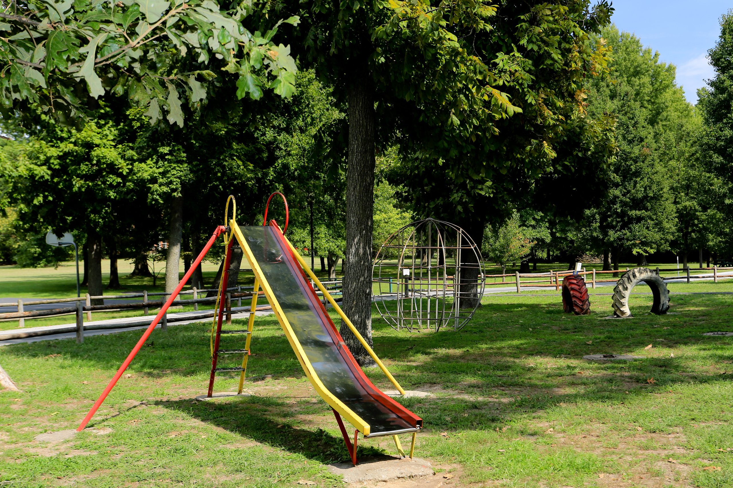 Park goers can enjoy the playground, baseball fields, and a walking trail. Restrooms are available.