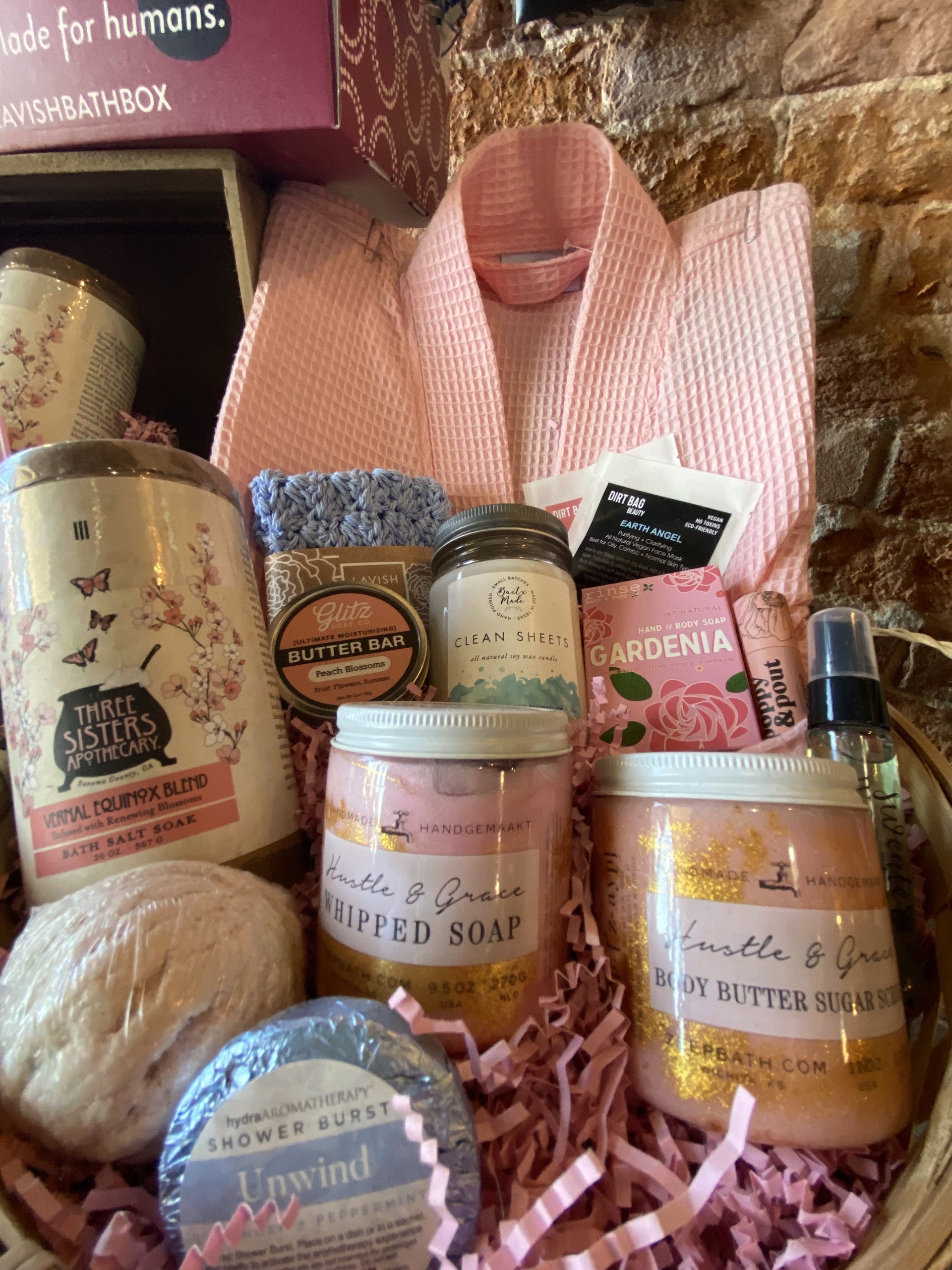 Lavish Bath Box specializes in all-things Pamper! Treat yourself or someone else to a luxurious pamper kit for him or her. These amazing baskets can include anything from bath bombs, salts, soaps, bubbles, lotions, scrubs, balms, moisturizers, and candles to comfy bath robes.