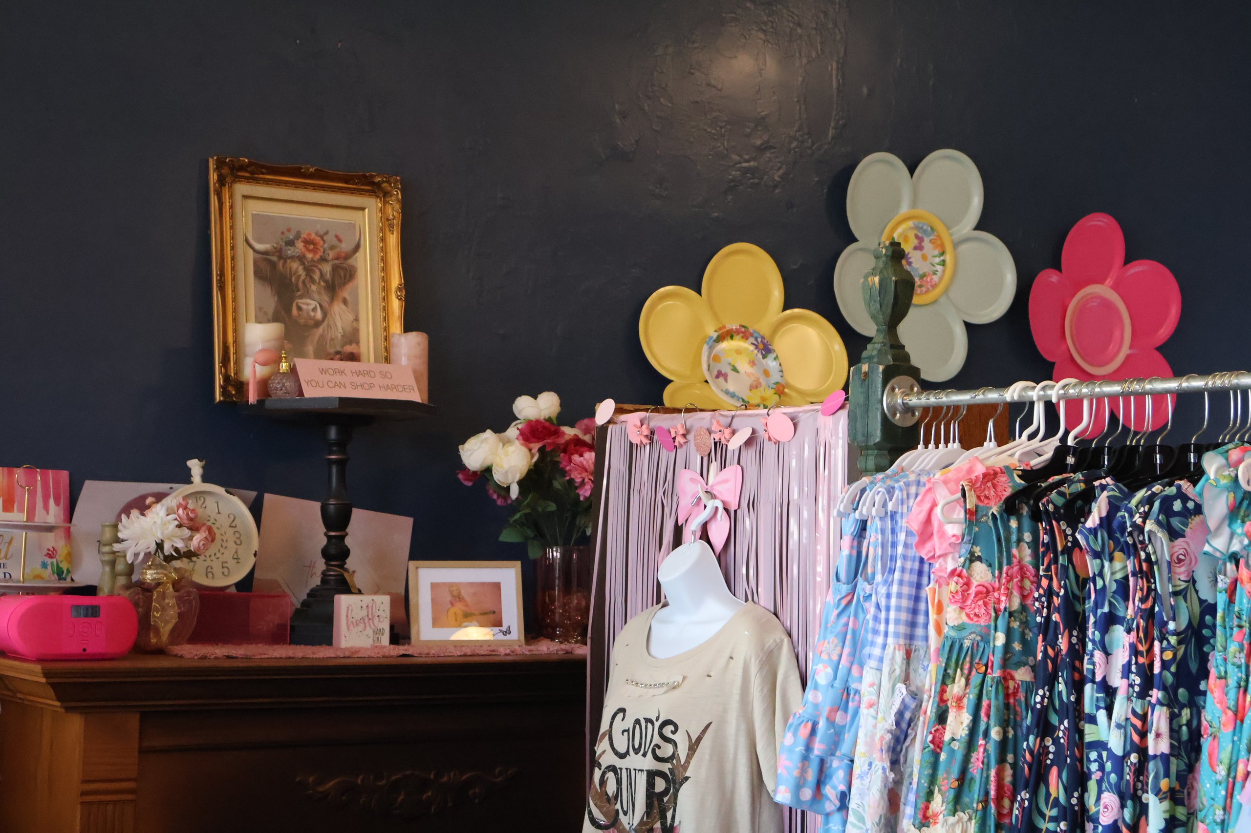 Boutique Offerings – The Painted Cowgirl offers a variety of clothing and accessories for ladies and children, with sizes ranging from small to 3X.