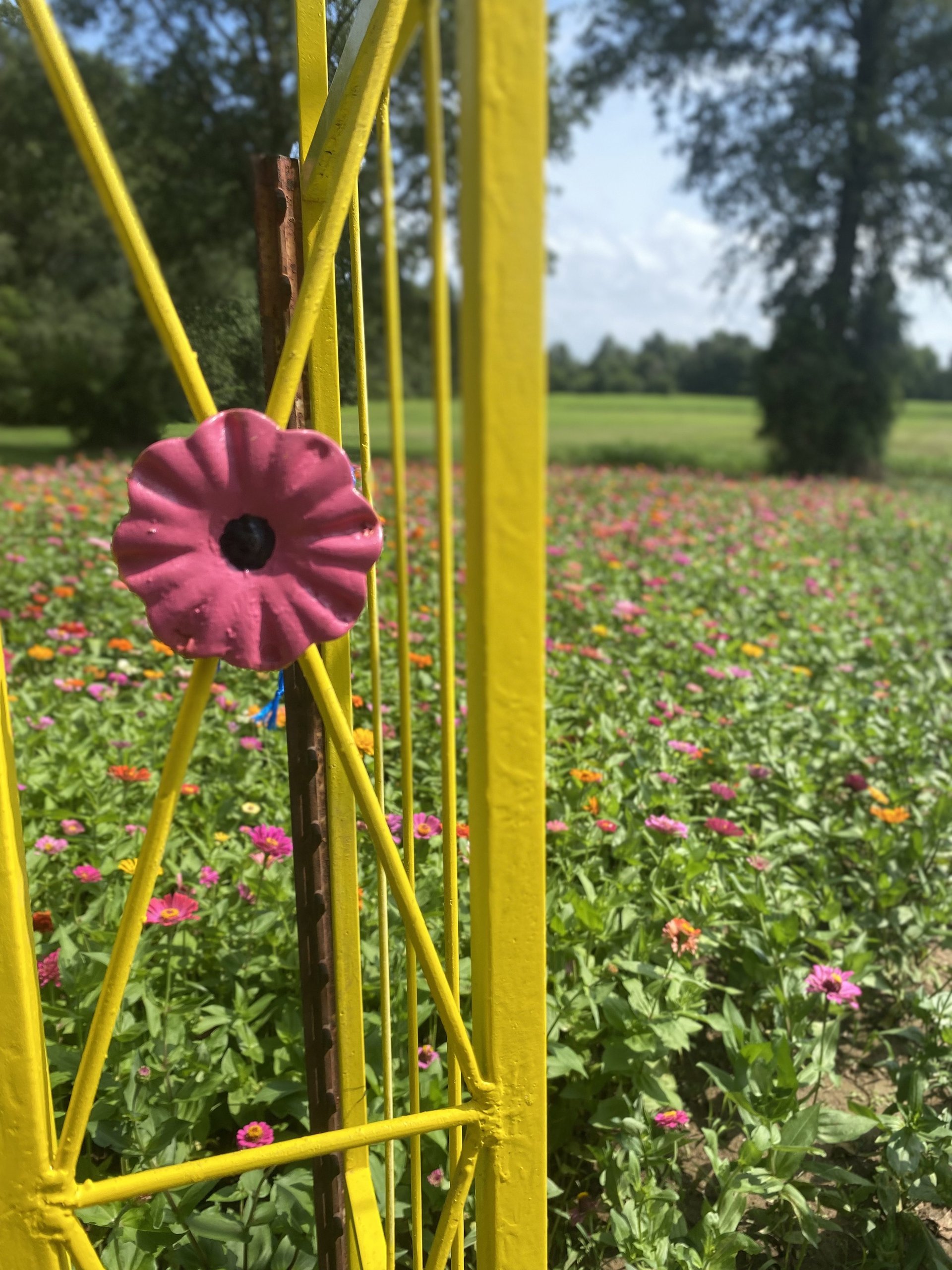 Come out to see the zinnia field or catch the sunflowers and gourds growing!
