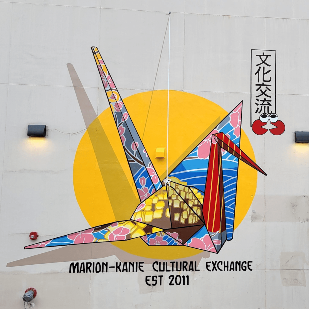 Learn more – Designed and Painted by Maddie Deiters of ThreeLine Art. The inspiration behind this piece is the Marion and Kanie (Japan) Cultural Exchange relationship.