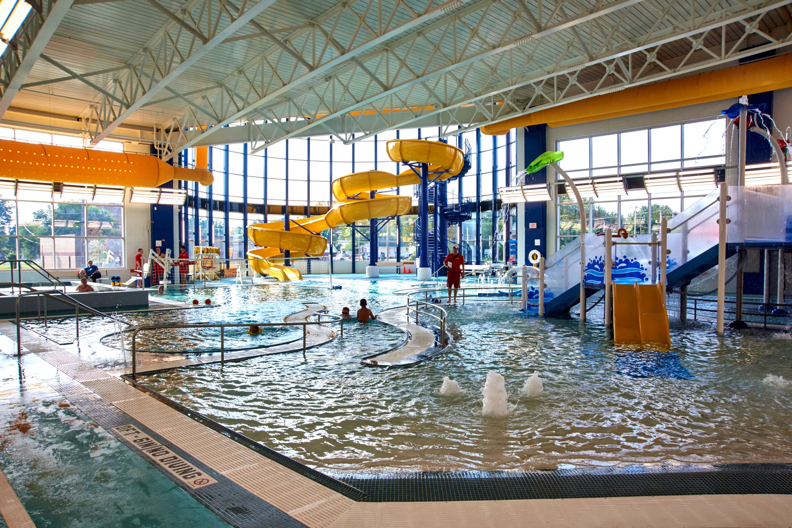 Explore three-story waterslide, kiddie pool, lazy river, and hot tub or join a fitness/water aerobics class.
