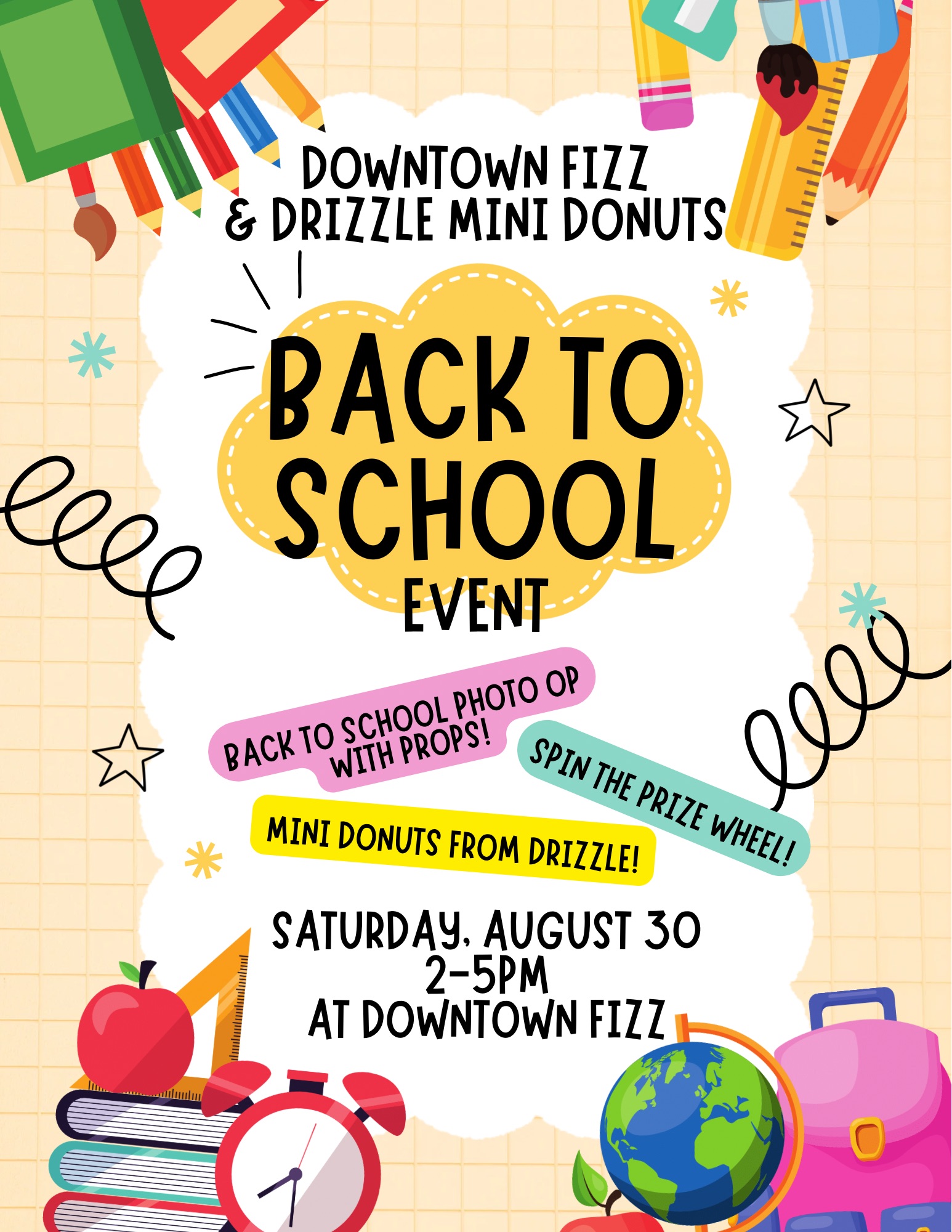 Happy Back to School season!!! We’ve teamed up with Drizzle Mini Donuts to give you a fun back to school party! Join us on Saturday, August 30 from 2-5pm to spin the wheel for prizes, take photos with back-to-school props, and get MINI DONUTS from Drizzle!! ![]()