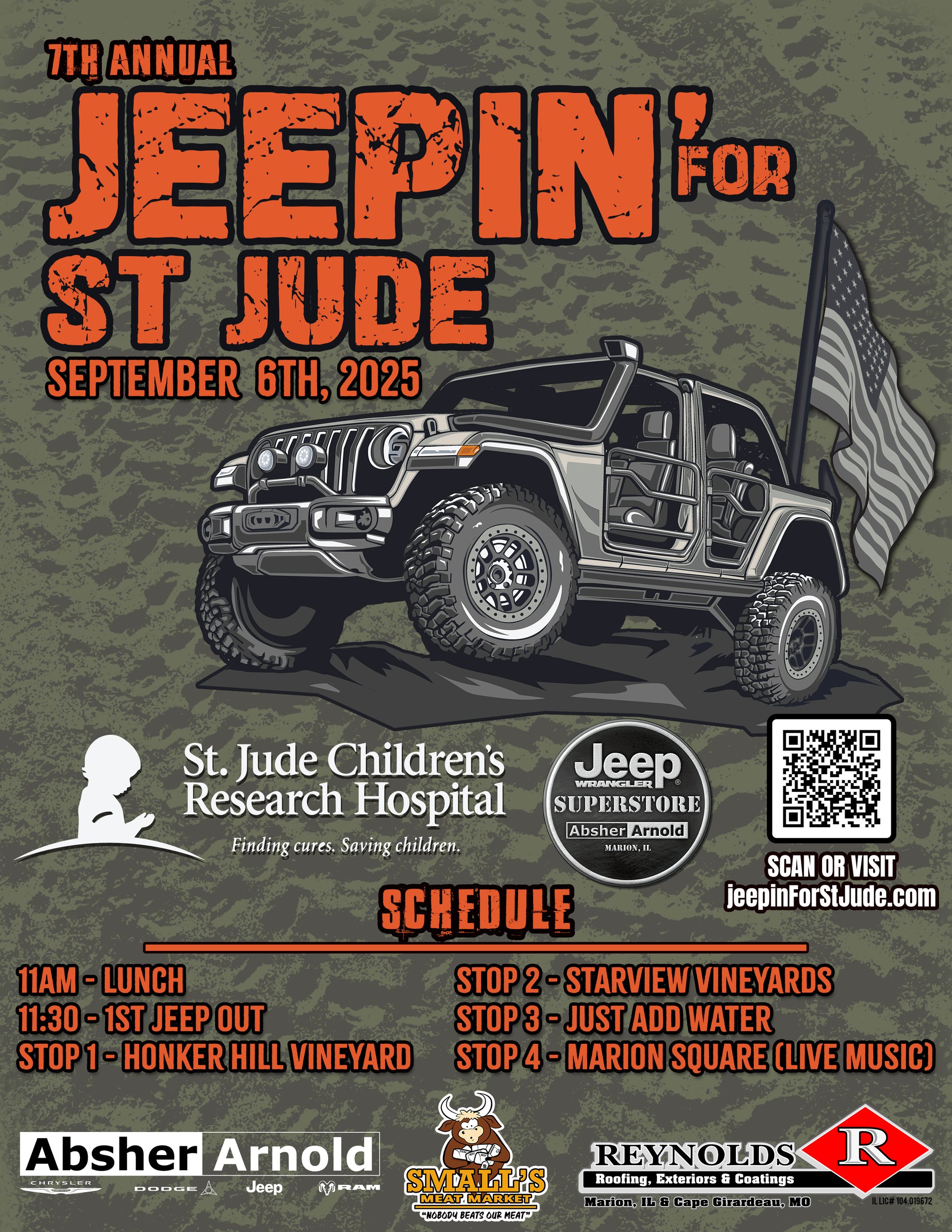 SAVE THE DATE! Last year’s Jeepin’ for St Jude brought 116 Jeeps from 4 States and Raised $14,000! We need your help to make this year even better! Details and the Pre-registration link will be shared soon!