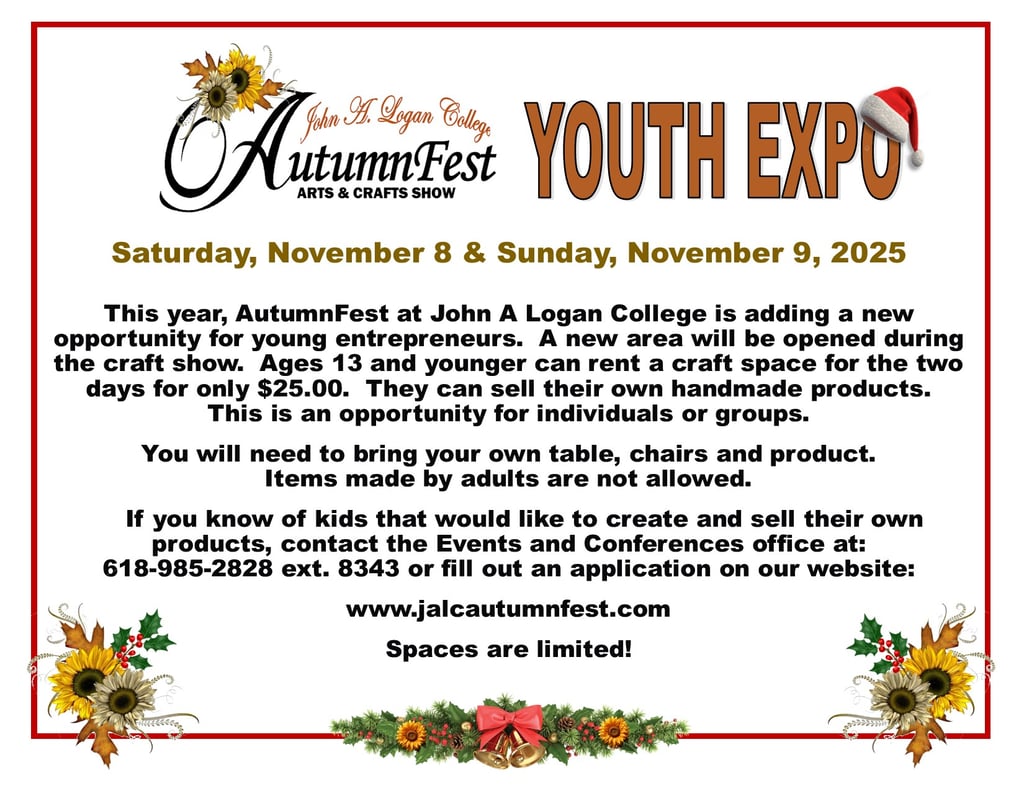 Don’t forget to bring your camera! Between the fall decorations, smiling faces, and Santa himself making an early appearance, there’s no shortage of photo ops. Whether you’re browsing, performing, or simply soaking up the atmosphere, AutumnFest at John A. Logan College is the perfect way to wrap up the fall season and step into the holidays with joy.
