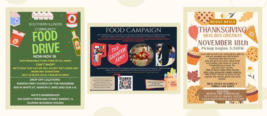 Food pantries aren’t just places to receive help they’re also wonderful places to give help. This time of year, donations of canned goods, pantry staples, and non-perishable items are needed more than ever. Even small contributions can make a big impact. A few extra cans of vegetables, boxes of pasta, or jars of peanut butter can bring comfort and joy to a family right here in our own community.