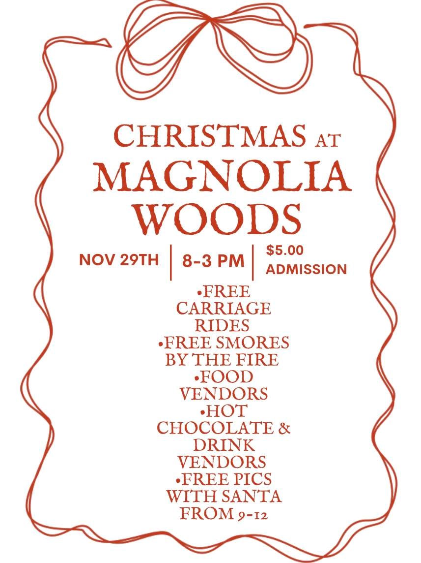 We are almost a MONTH AWAY from CHRISTMAS AT MAGNOLIA WOODS! 🎄❄️ when? November 29th, 2025 where? Magnolia Woods Venue (12380 Dillingham Rd, Thompsonville IL) what time? 8 am to 3 pm $5.00 admission 12 AND UNDER FREE!!! join us for a magical day
